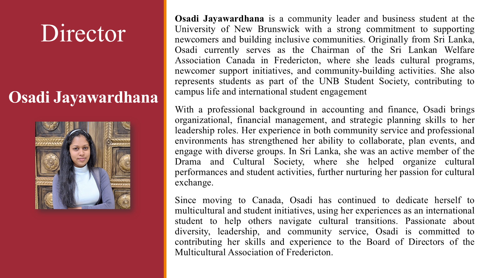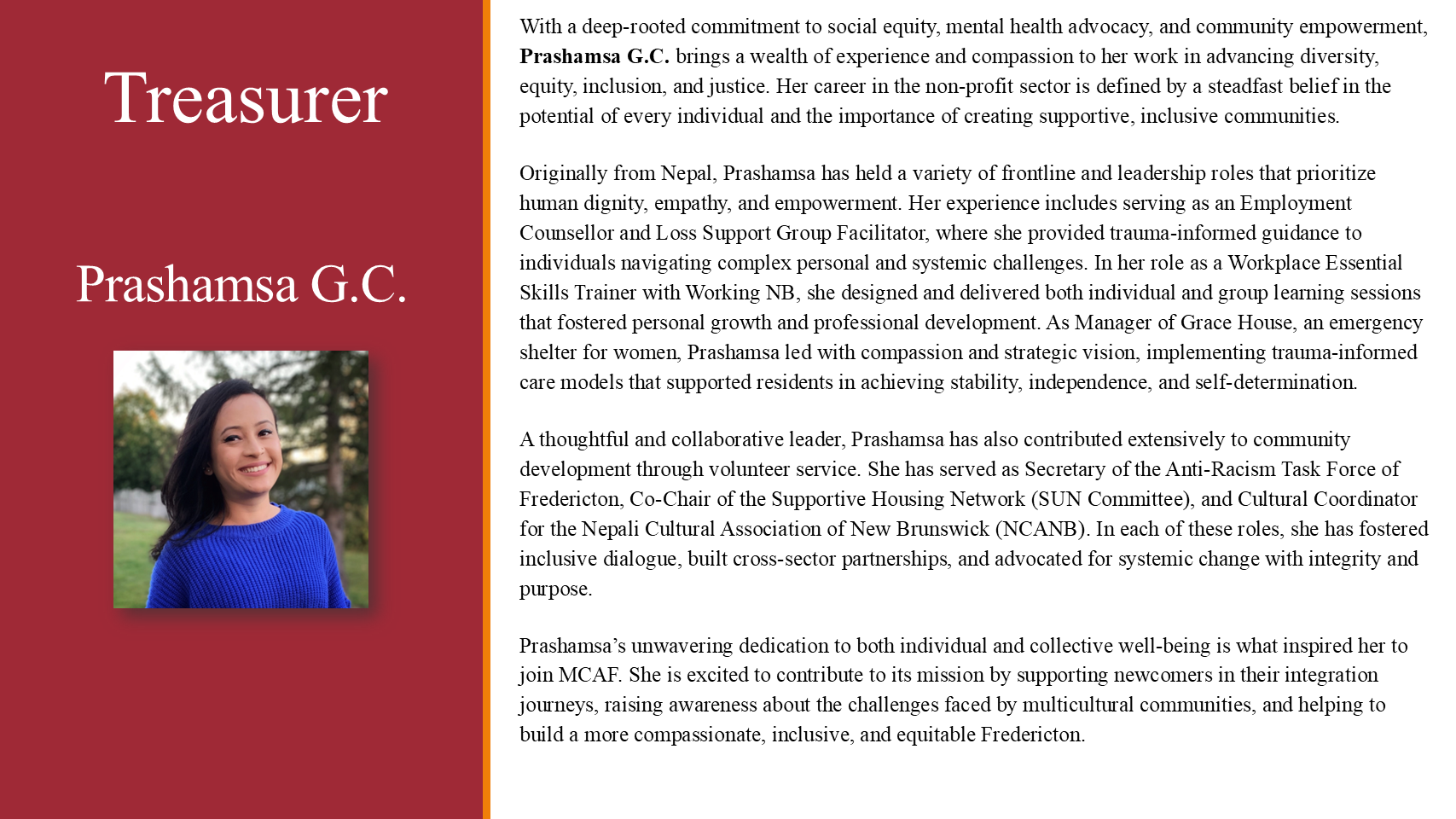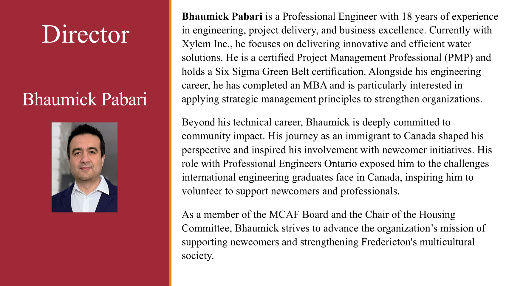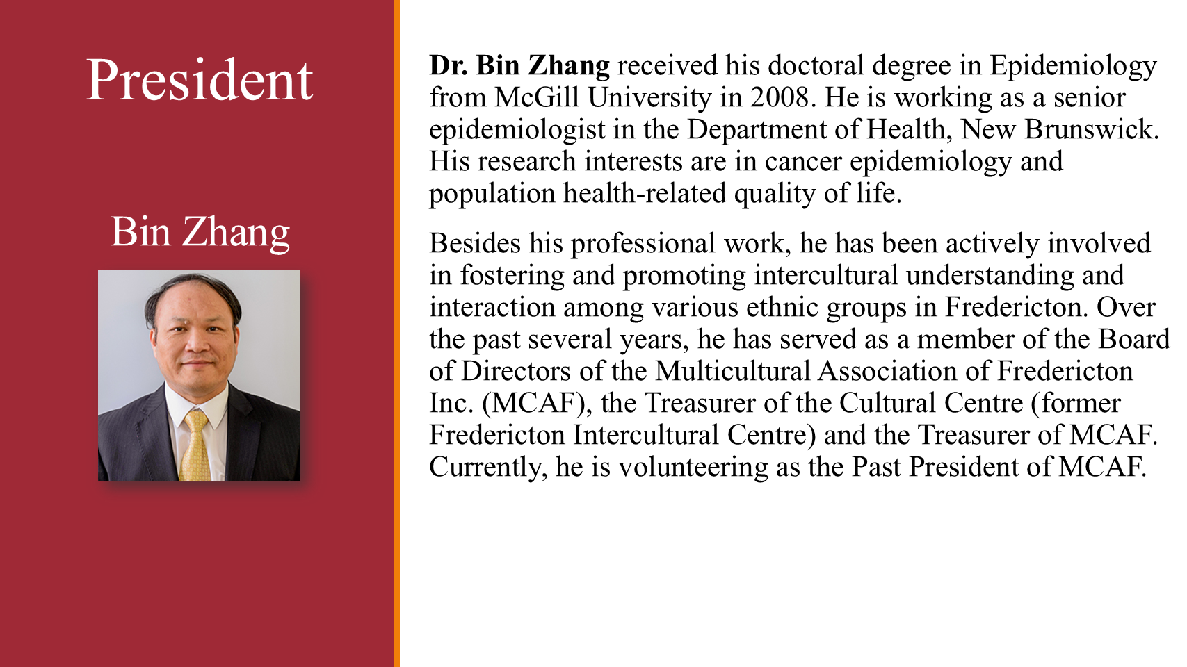 2025 – 2026 Board of Directors Bin Zhang, PhDPresident Donna GordonFirst Vice President Theresa Bartlette-ChaseSecond Vice President Manisha VarmaSecretary Sandy LiuPast President Prashamsa G.C. Treasurer Bhaumick PabariDirector Subi AdhikariDirector Luowei H. XuDirector Lup Cheng QuekDirector Osadi JayawardhanaDirector